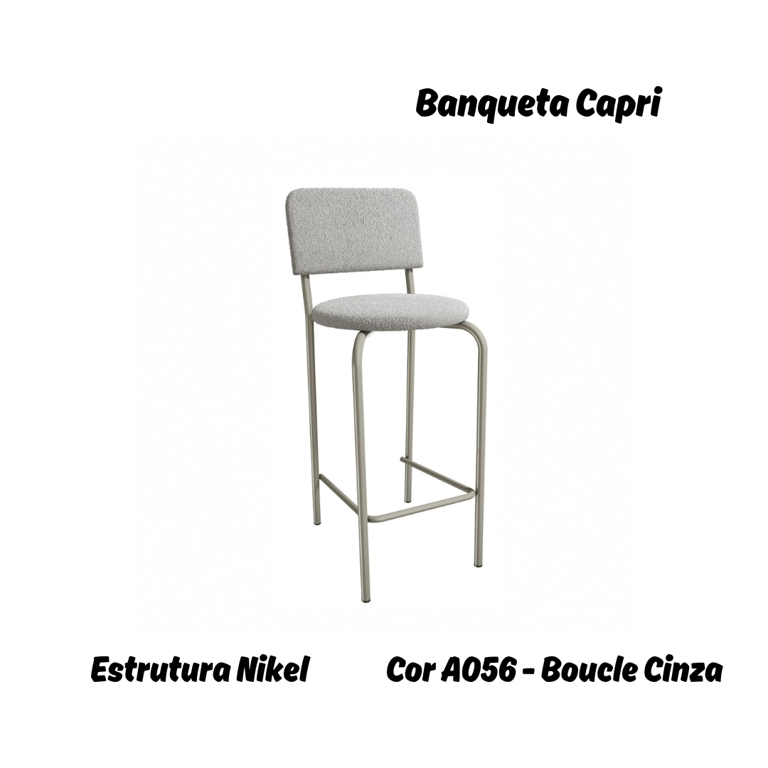 Banqueta Capri - Ref. 1B715-NK - Estampa: A056 (Boucle Cinza) Nikel - Kappesberg Crome