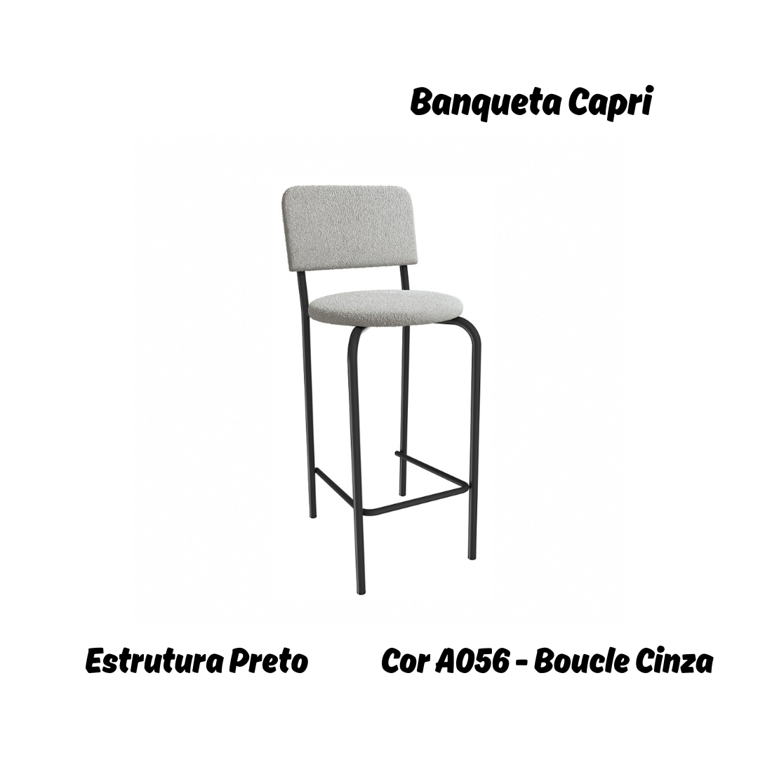 Banqueta Capri - Ref. 1B715-PR - Estampa: A056 (Boucle Cinza) Preto - Kappesberg Crome