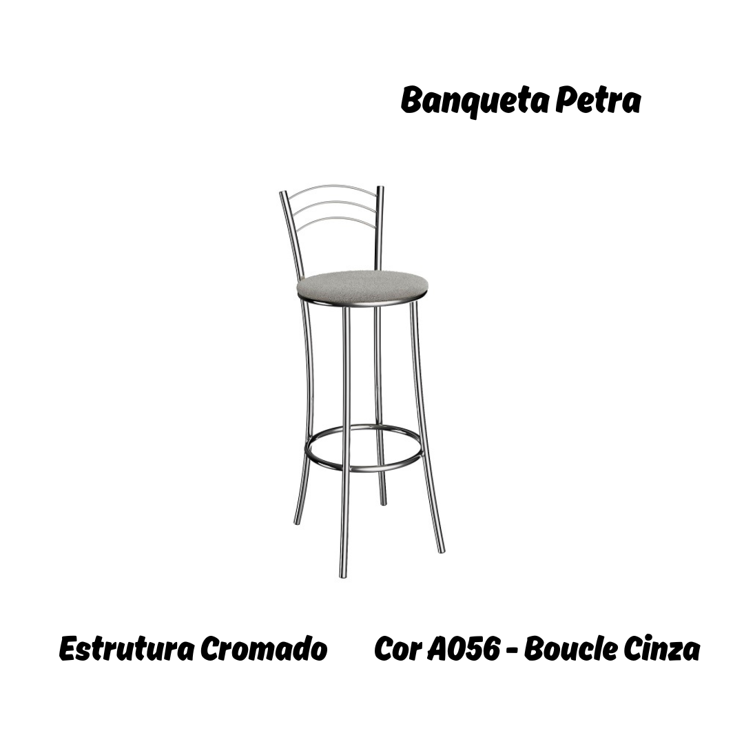 Banqueta Petra - Ref. 1B700-CR - Estampa: A056 (Bouclé Cinza) Cromado - Kappesberg Crome