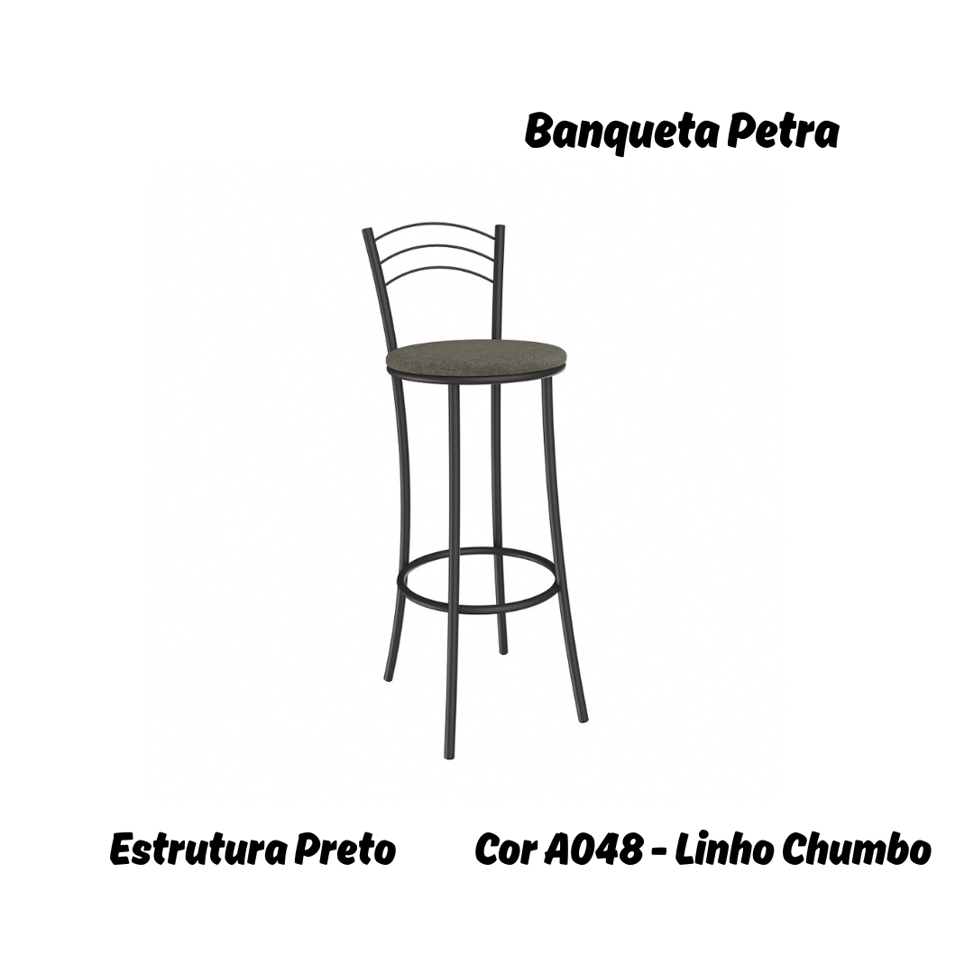Banqueta Petra - Ref. 1B700-PR - Estampa: A048 (Linho Chumbo) Preto - Kappesberg Crome