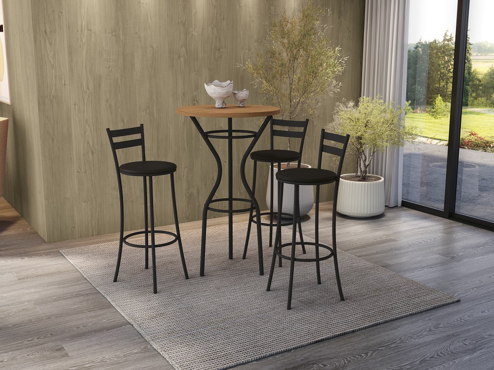Conjunto Mesa Bistro + 03 Banquetas Jade - Linha: Kappesberg Crome