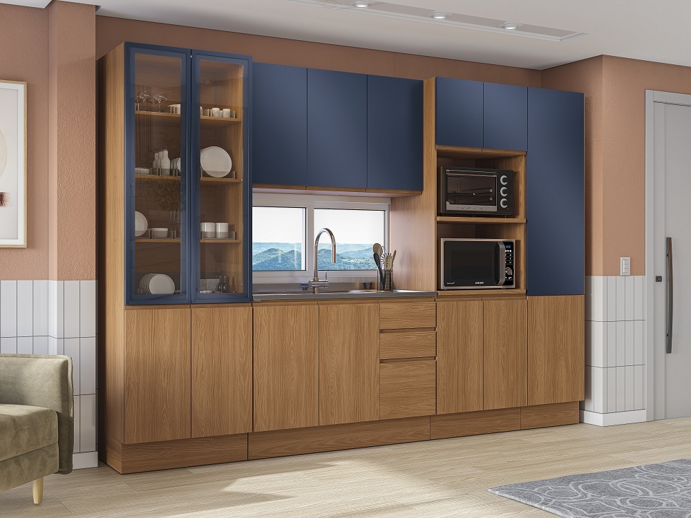 Ref. R628 - Paneleiro - Canela/Azul - Alt. 220cm Larg. 50cm Prof. 52cm