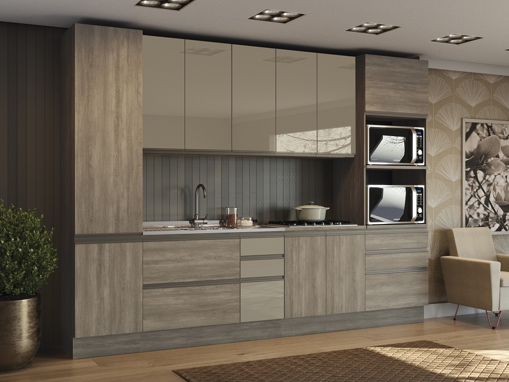 Ref. G750 - Kit Forno e Micro - Nogal - Alt. 240cm Larg. 70cm Prof. 52cm