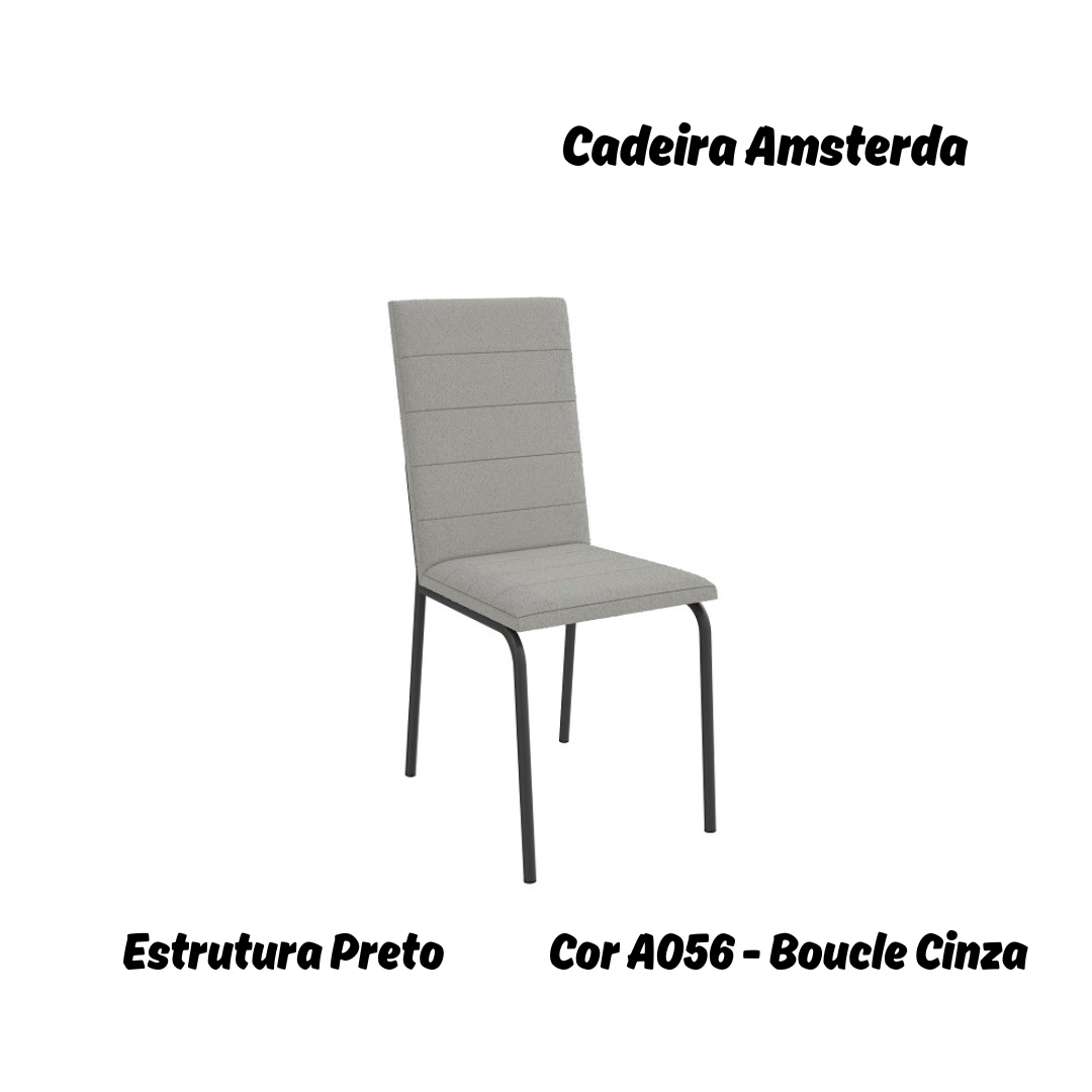 Par de Cadeiras Amsterdã - Ref. 2C091-PR - Estampa: A056 (Bouclé Cinza) Preto - Kappesberg