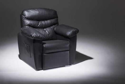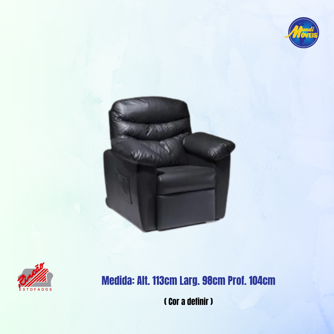 A almofada do encosto é fixa com enchimento de fibra siliconizada e flocos de espumas, o encosto reclina com máquina de ferro e tem apoio para os pés quando reclinado.