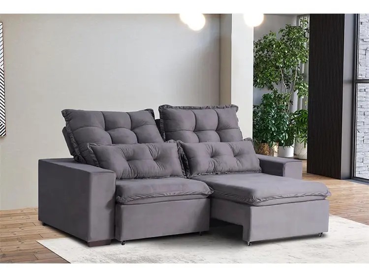 Assento: Retrátil. A sustentação é proporcionada por percintas elásticas e molas ensacadas, espumas de densidades 27 e 23, com uma camada de manta termobonding. Para maior conforto, as molas ensacadas estão dentro do pillowtop.